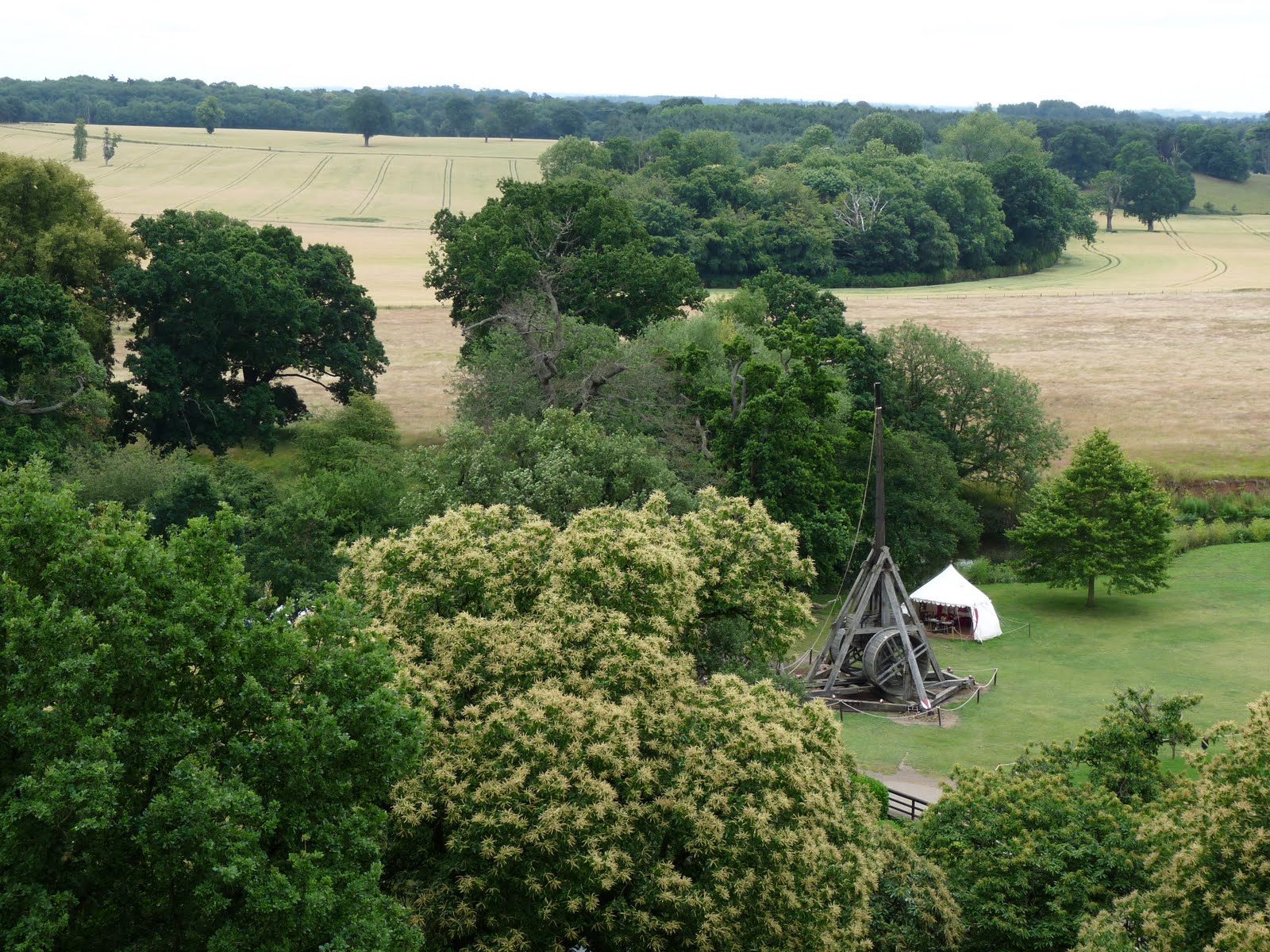 From the top of the mound you can see down across the surrounding land with a 60 foot trebuchet or seige machine that they demonstrate by having it throw a huge stone for an enormous distance.